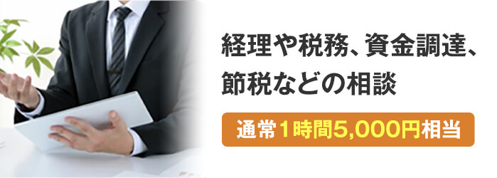 ・経理や税務、資金調達、節税などの相談(通常1時間5,000円相当)